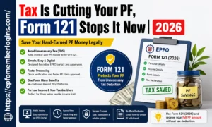 If you want to save tax on your PF (Provident Fund) money, you must understand the new Form 121 (2026). Many people still use old forms like Form 15G and Form 15H, but now the system is changing. The Employees’ Provident Fund Organisation (EPFO portal) is introducing new methods to make tax saving easier and more clear for everyone.